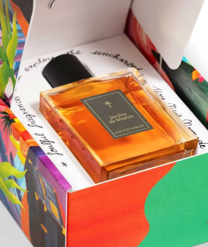 Jardins de Misfah is an olfactory pause, a moment suspended in time, a harmony of scents where the fresh whisper of flower petals fuses with an accord of creamy dates, honey and sweet water. Embodying the essence of feminine sensuality, Jardins de Misfah is a soft touch of the skin, a sweet kiss on the neck.